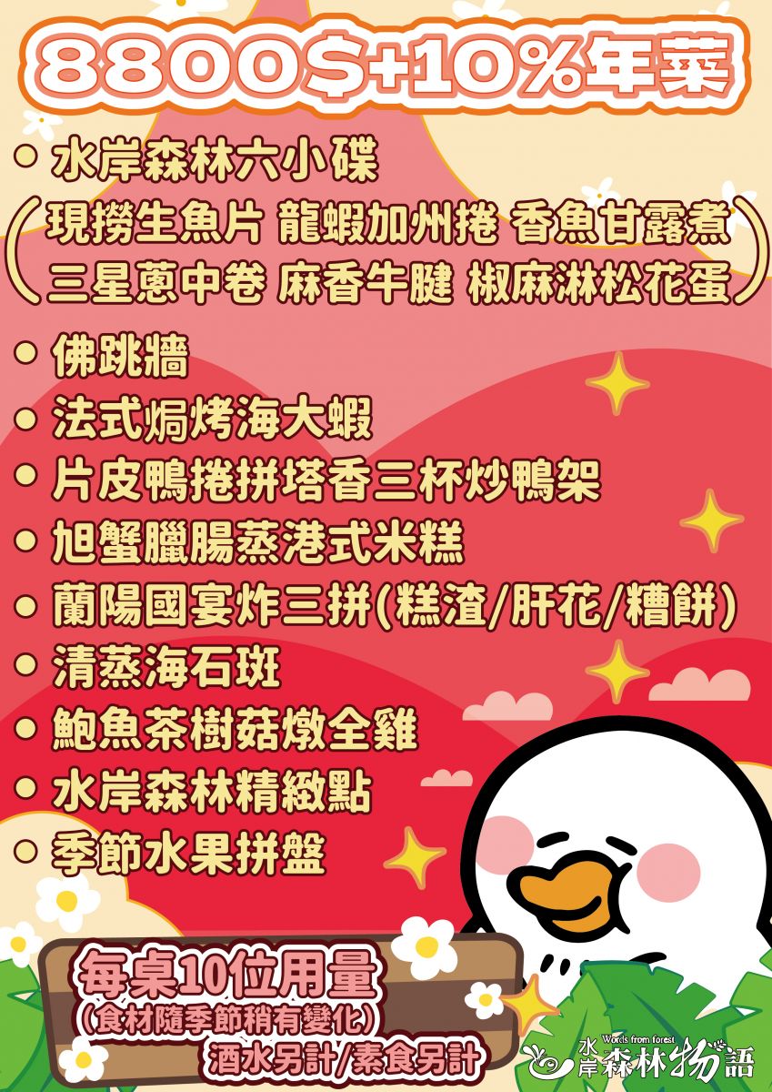 水岸邀請您來這,與家人共享團聚溫暖時光。(10人/桌)
